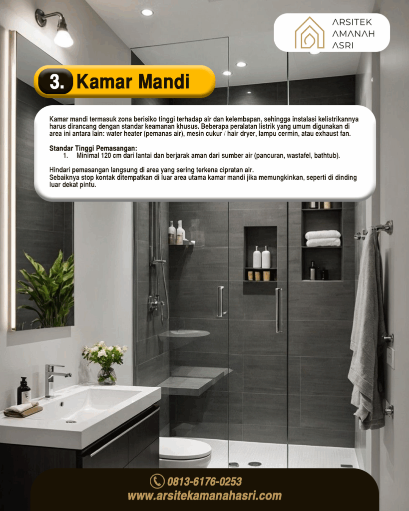 Dengan sistem instalasi yang aman, kamar mandi tetap fungsional tanpa mengorbankan keselamatan penghuni rumah.